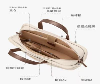 1 | 公文包 | (1)材質(zhì)功能:面料織物,需防潮防塵防潑水,耐刮耐磨,不易變形;里料織物;手提帶采用頭層牛皮制作,質(zhì)地堅(jiān)韌。 (2)拉鏈:雙向拉鏈,拉合順滑不卡槽,不卡頓;拉頭銅合金材質(zhì),耐磨,牢固可靠;齒面平滑無(wú)毛刺;牛皮拉片:采用頭層牛皮制作,質(zhì)地堅(jiān)韌。 (3)款式要求:橫款長(zhǎng)方型公文包;拉鏈開(kāi)袋且內(nèi)部有拉鏈暗袋;車線均勻、工整、精湛、堅(jiān)韌;內(nèi)部:1個(gè)主倉(cāng)、1個(gè)電腦隔層、2個(gè)插袋、1個(gè)拉鏈袋;外部:1個(gè)前幅拉鏈袋、1個(gè)后幅拉鏈袋、2個(gè)側(cè)袋、1個(gè)拉桿插;可手拎,帶有可拆卸/調(diào)節(jié)肩帶(可單肩,可斜跨),帶有便攜拉桿帶,可固定在行李箱拉桿上。 (4)尺寸克重:公文包長(zhǎng)≧400mm:寬115mm:高300mm;手柄≧150mm;肩帶中高≧270-600mm;肩帶周長(zhǎng)≧790-1460mm;克重:≧0.5kg。 (5)顏色要求:杏色或黑色。 (6)logo要求:外包裝需張貼主題宣傳標(biāo)簽,標(biāo)簽具體內(nèi)容由采購(gòu)人確定,參考樣式如下: